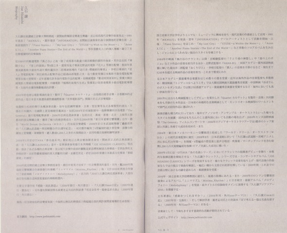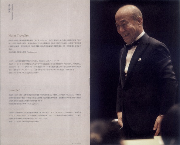 原節目冊上面寫的跟現場演出第八首water traveller與第九首summer對調,簡單來說..這次音樂會算是久石讓新專輯"minima rhythm"的現場演出,比較意外的是"水之旅人"這張選中 water traveller這首..現場聽跟聽cd不一樣,而且"水之旅人"這張.就算是標準的樂迷也很少人知道.居然被選中.110分鐘很快就過去....還蠻意由未盡.遺憾的是我期待的幻想美術館的BOLERO波利樂這首沒能演出,這首非常適合現場交響樂的演出,BOLERO這首可以驗證交響樂團跟指揮的默契.還有交響樂團團員演出的音準,而且鋼琴的部份比重比較多,也可以現場欣賞久石讓的琴藝....真的是....可惜
